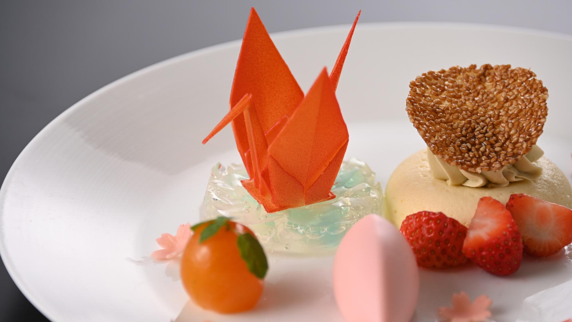 広島県産乳製品のチーズケーキ いちごのジェラート チョコレートの折り鶴