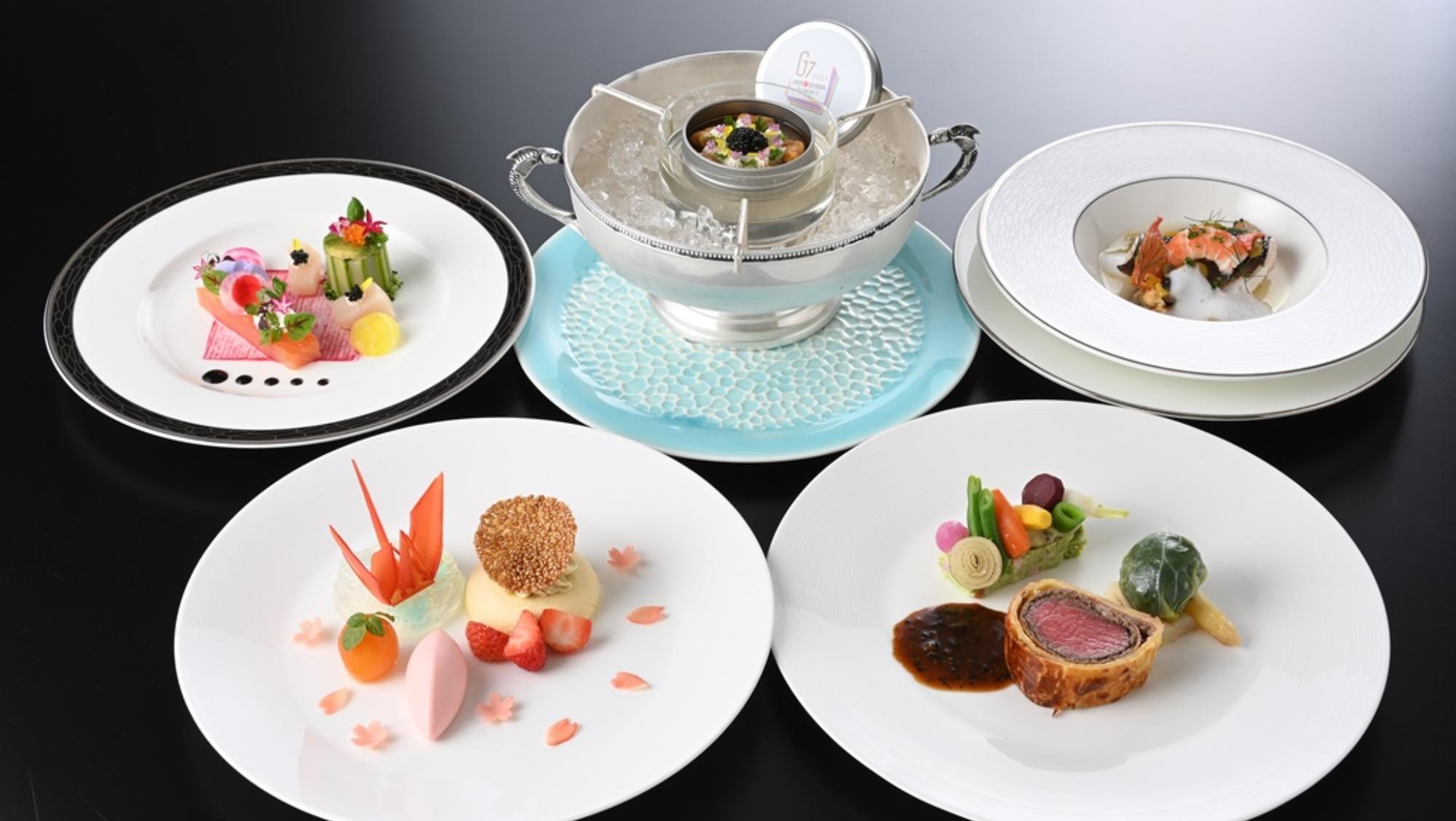 ワーキングランチや社交夕食会にて提供されたお食事を、特別にアレンジしたコースで、G7広島サミットの雰囲気を肌で感じる優雅なひとときをお過ごしください。