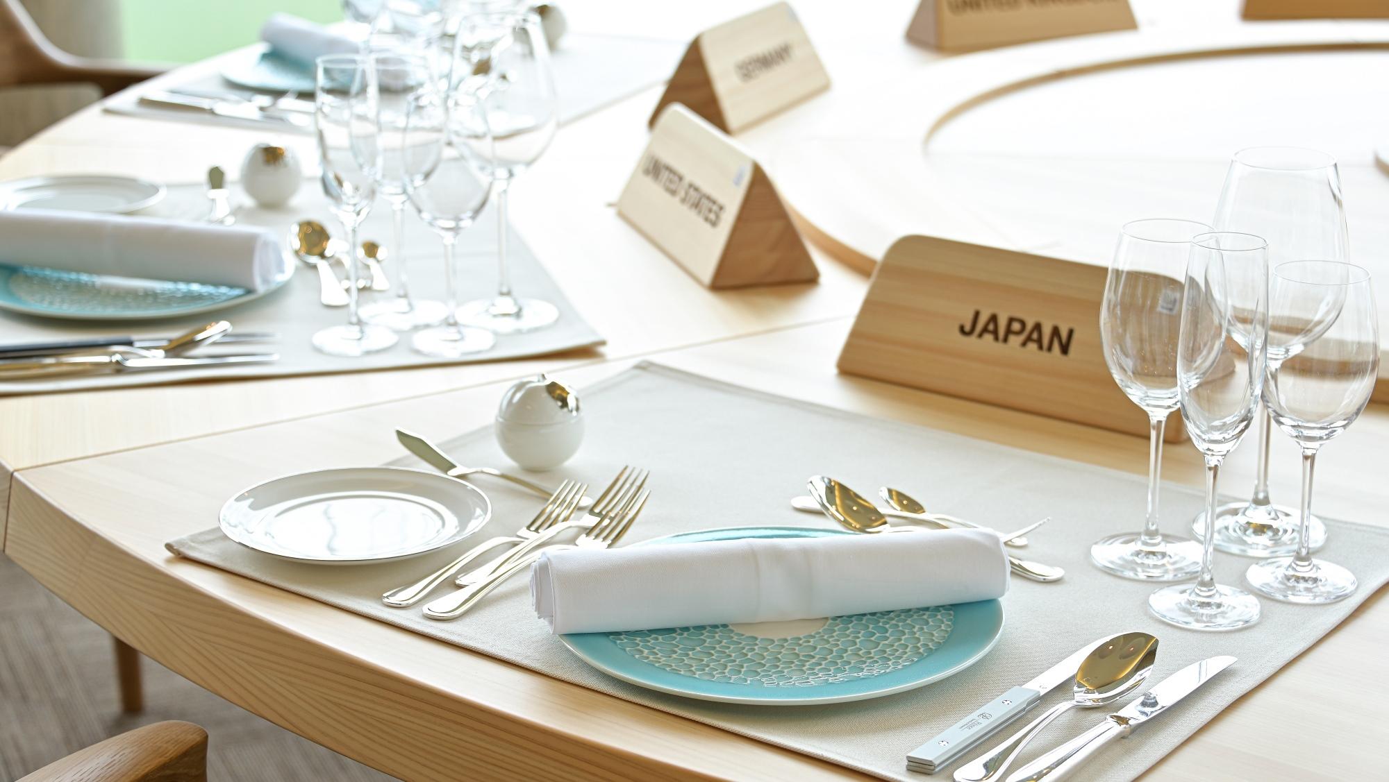 G7各国首脳が実際に使用したセッションテーブルで、実際に使われたカトラリーを使いお召しあがりいただけます。