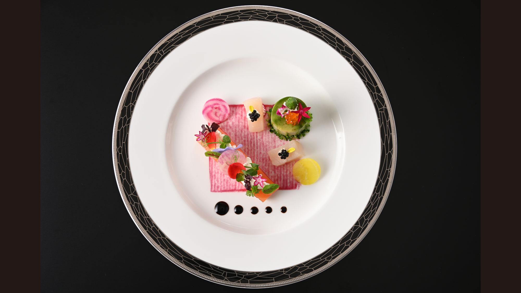 2023年5月20日、G7広島サミット(2日目)、メインバンケットホール「瀬戸内」において、岸田文雄内閣総理大臣夫妻が主催した、G7および招待国の首脳並びに国際機関の長とその配偶者を招いた社交夕食会で提供されたメニューのアレンジコースです。
