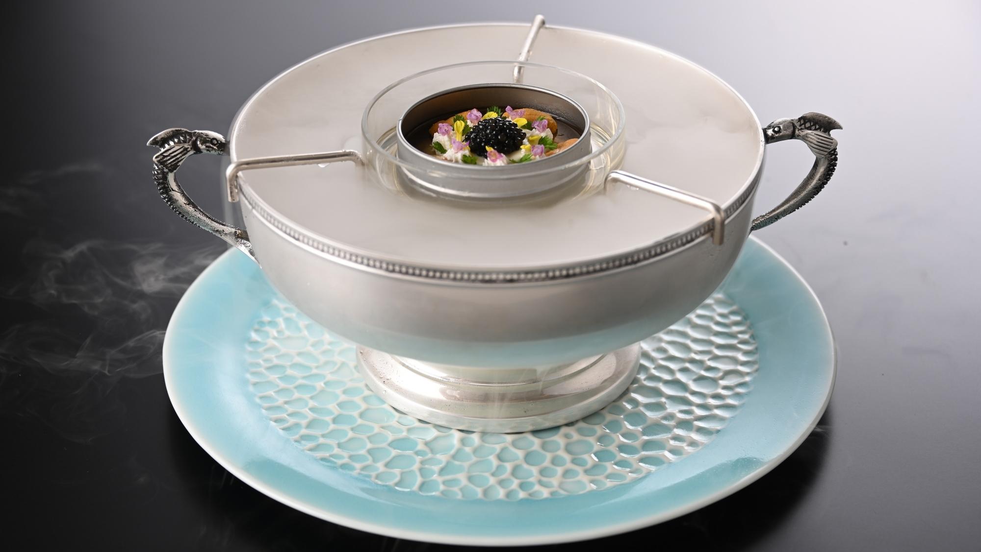 毛蟹のロワイヤル 広島県産わさびと牡蠣佃煮のクリーム 雲丹と宮崎キャビア添え