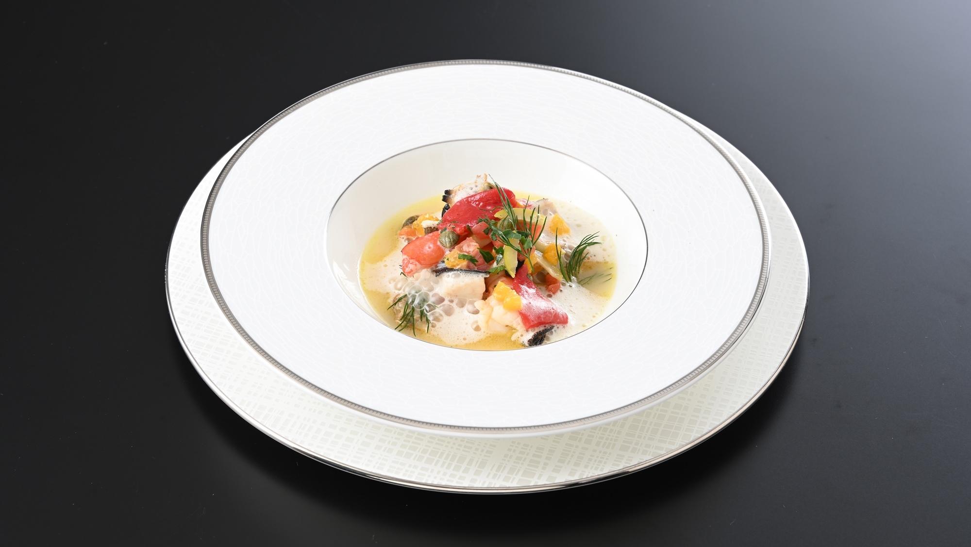 旬魚とムール貝の瀬戸内アクアパッツァ 小豆島オリーブの香り 軽いスープ仕立て