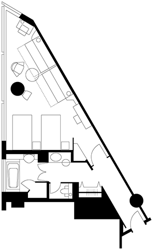 | ベッドサイズ | 幅110cm×長さ203cm 2台・エキストラベッド:幅95cm×長さ195cm 1台 |