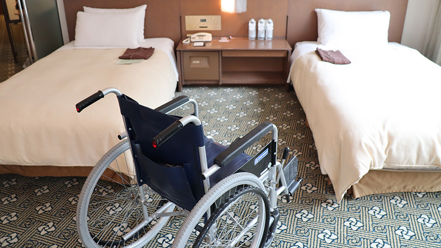 室内は仕切りのないゆったりとした53㎡の客室。車いすをご利用のお客さまにも、利用しやすい設えに部分的な改修を施したお部屋です。