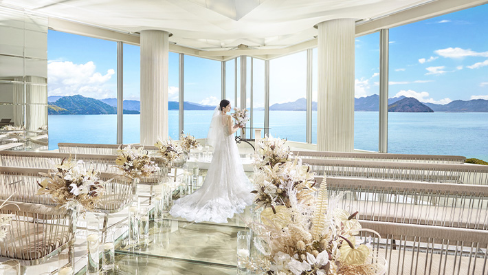 きらめく海をバックに愛を誓うオーシャンビューチャペル「ラ ルミエール ヌーベル」