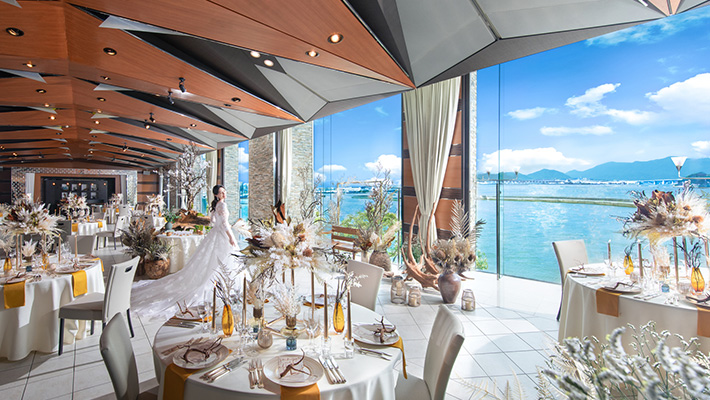 会場は全てオーシャンビュー。おいしいお料理とともに絶景でゲストをおもてなし。