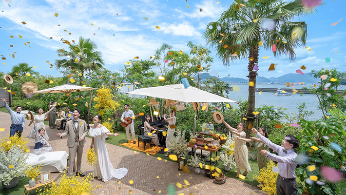 開放的なガーデンテラスで、リゾートウエディングを叶えられる。