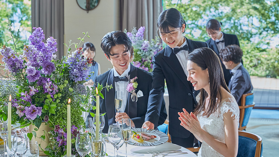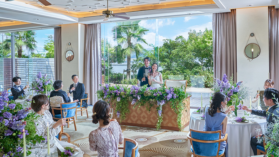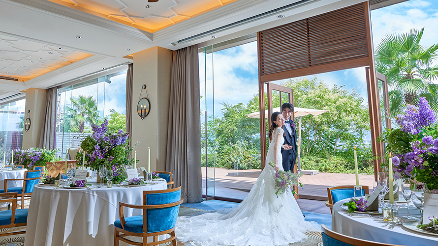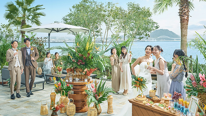 おふたりのパーティーイメージをコーディネートや演出で表現していただけるリゾート感あふれるデザイン。