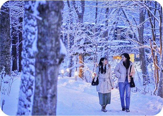 十勝岳連峰の絶景や豊かな森を臨み、四季を通して楽しめるリゾート富良野。森の中のショッピングエリア「ニングルテラス」や温泉を擁し、ホテルに直結したスキー場、近郊にはゴルフ場も。