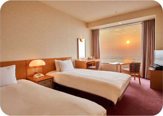 晴れる日が多く、空気が澄んでいることから、秋から冬にかけてが最も美しいとされる釧路の夕日。空一面を茜色に染める日没はもちろん、日没後のマジックアワーも見逃せません。オーシャンビューのお部屋でゆったりと過ごす夕暮れを。