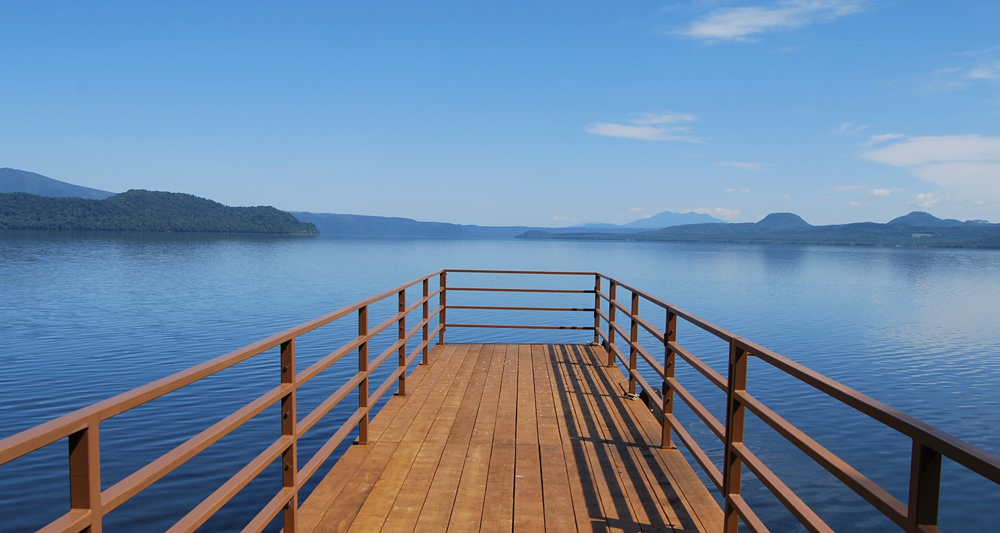 屈斜路湖に突き出た桟橋は写真スポットに。