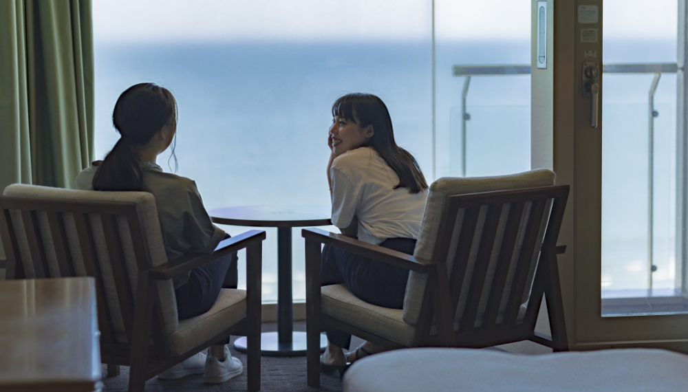 四季を問わず美しい風景が望めるテラスは、【絶景テラス】と呼ばれ、ホテル屈指のフォトスポットになっています。滞在中はテラスで海を眺め、波音を聴き、潮風を感じて、日々の疲れを癒してみてはいかがでしょうか。