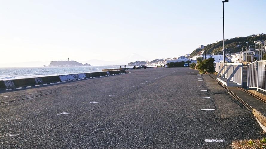 江の島や富士が見渡せる海岸駐車場七里ヶ浜海岸駐車場