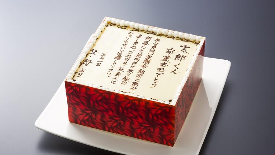 いちごのショートケーキをチョコレートでコーティングしました。卒業、入学の記念に“証書ケーキ”はいかがですか。これまでの出来事を思い出しながらお祝いのメッセージを考える時間も楽しい時間になりますように。
