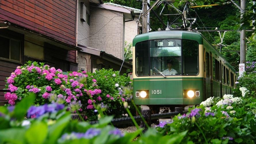 江ノ電の車窓からは、四季折々の風景はもちろん、海や富士山、江の島を望む絶景が広がります。