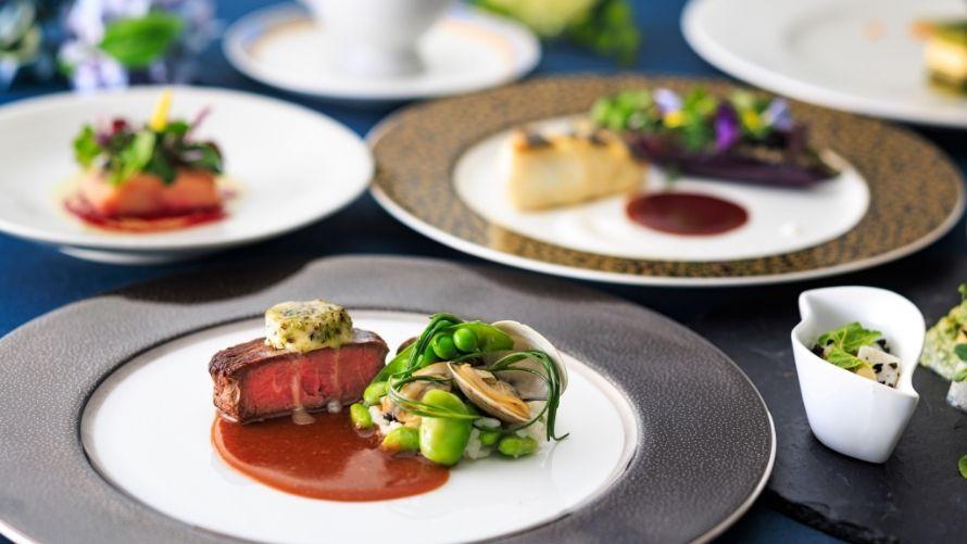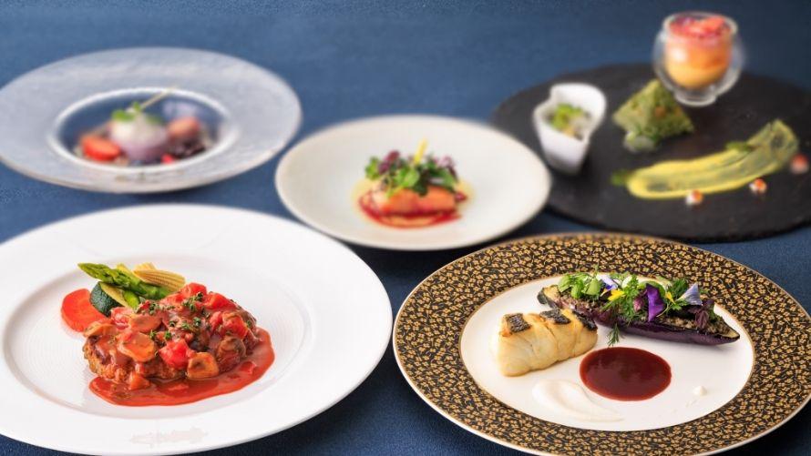 初夏の味覚を使用したシェフの遊び心あふれる多彩なディナーコース。