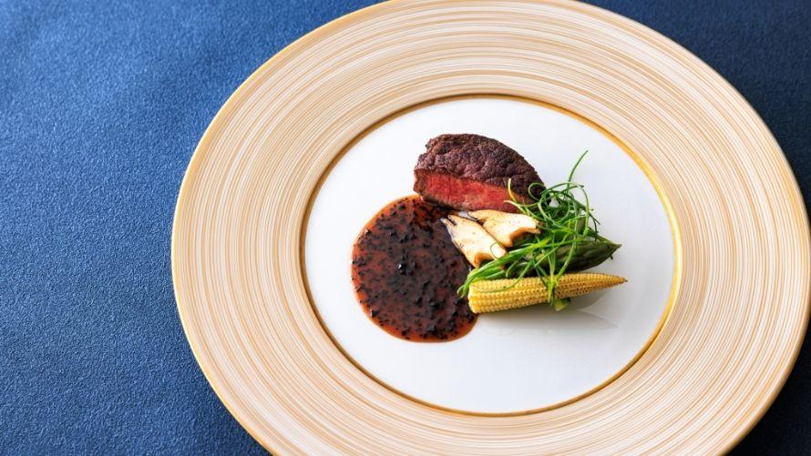 国産牛フィレ肉と蝦夷アワビのリッチな味わいにトリュフソースの旨味を重ね、贅沢な一品に仕上げました。