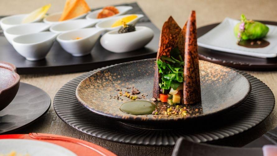 1日8名さま限定の「鎌倉彫ディナー」コース。趣向を凝らしたアーティスティックなお料理と鎌倉彫の器で、悠久の歴史に想いを馳せるひとときをお楽しみください。博古堂オリジナル・鎌倉彫のお箸のお土産付き。