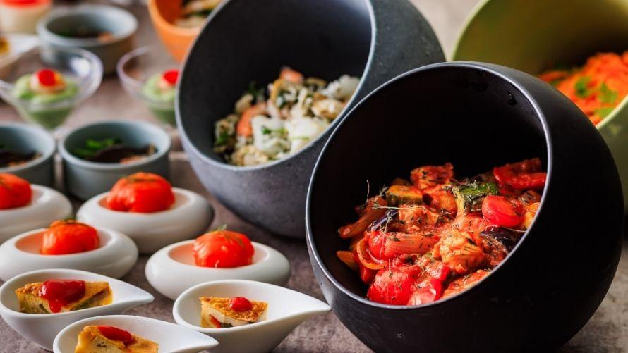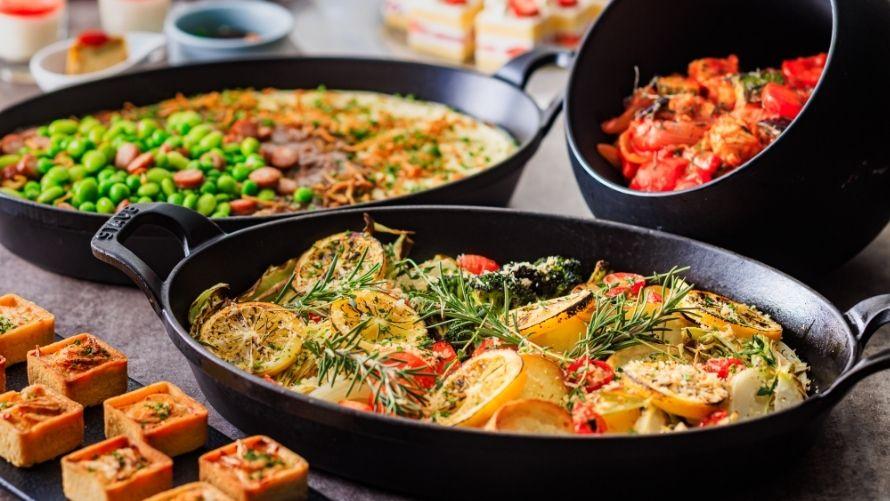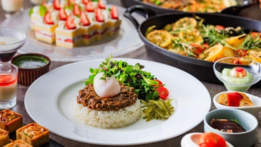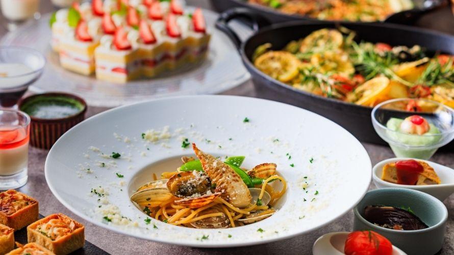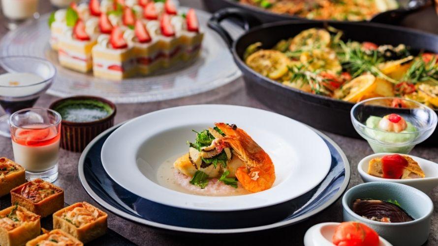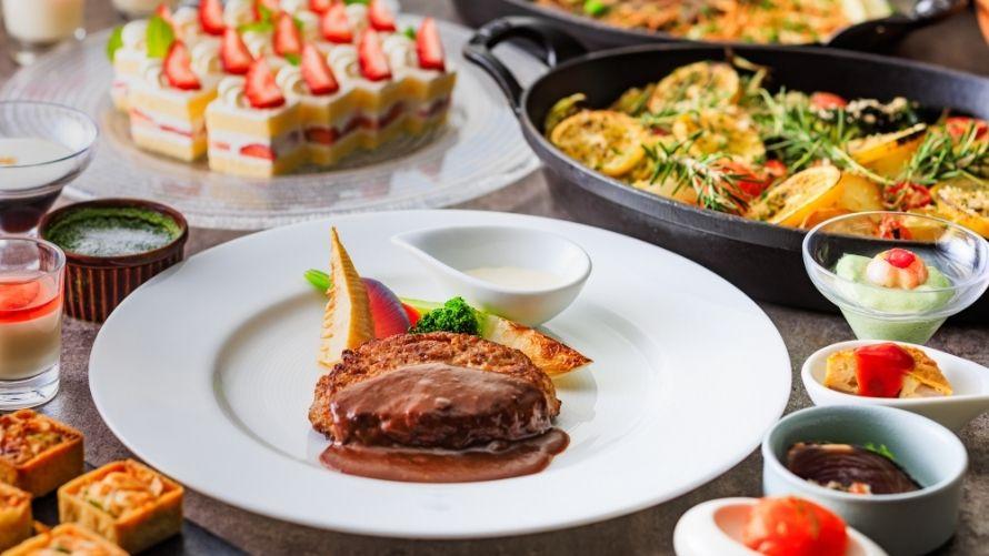 お好きなメイン料理をお選びいただくと、オードブルやスープ、パン、デザートなどをお好きなだけお召しあがりいただけるハーフブッフェ。