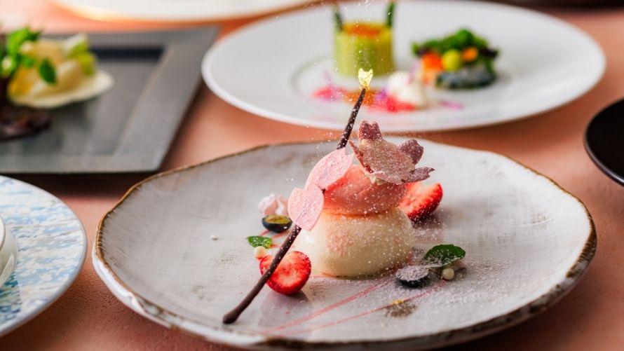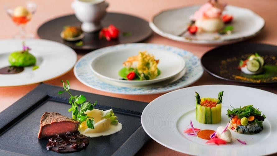 春の味覚を使用したシェフの遊び心あふれる多彩なディナーコース。