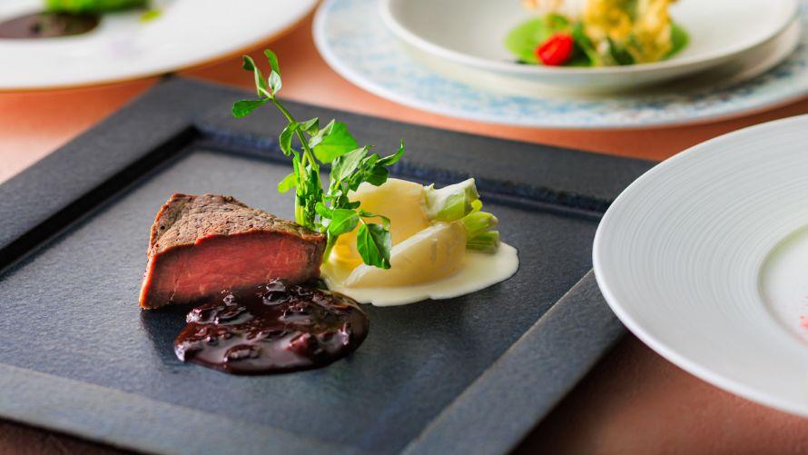 旨味のある国産牛フィレ肉を、フランスの春の香り「モリーユ茸」のソースとクリーミーな蕪とともにお楽しみください。