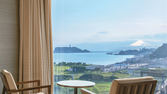 相模湾、ならびに江の島がお部屋からご覧いただけます。空気の澄んだ日には、富士山や伊豆大島が見ることもできます。バルコニーで心地よい風を感じながらゆっくりとお過ごしいただけます。