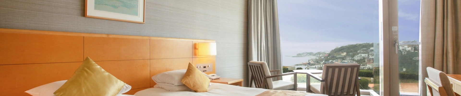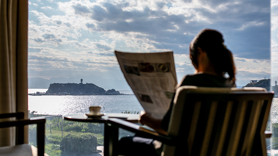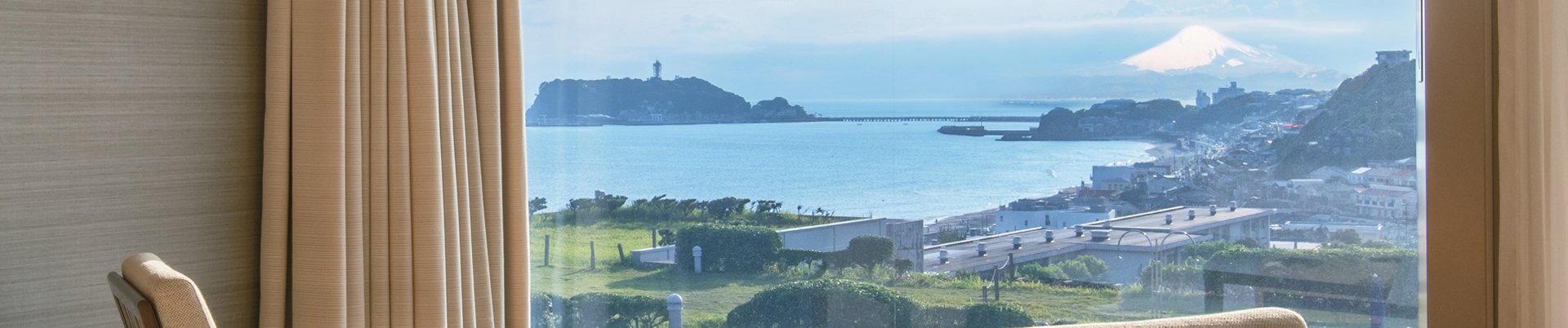 ホテル最上階の江の島が一望できる客室です。空気の澄んだ日には富士山をご覧いただけます。
