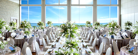七里ヶ浜の海が窓一面に広がるチャペル「マリンマリアージュ」で