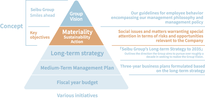 The Seibu Group refers to the initiatives aimed at realizing a sustainable society as "sustainability action" and has designated 6 important themes (materiality).