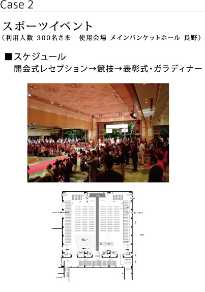 また、ゴルフコンペやテニスの大会・スキー大会などのスポーツイベントや軽井沢プリンスホテル敷地内の芝生エリアなどを使って開放的なイベントを行えます。