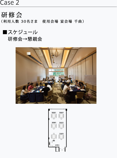 ニーズに合わせた会場コーディネイトが可能で、さまざまなスタイルで開催していただけます。天井が高く、美しい景色を望む大きな窓があり開放感に溢れる会場や、休憩時に充分リフレッシュしていただける設備が整っており、新しい発想が生まれる最適な環境をご提供しています。また、ホテル館内には外国語館内表記があり、外国語対応スタッフ、セキュリティスタッフがおりますので、海外のお客さまをお招きする際も安心してご利用いただけます。
