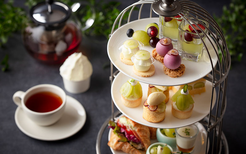 - 梅雨空を吹き飛ばす「ハッピーレイン」に、ジューシーな人気フルーツを堪能できる「シャインマスカット」。顔がほころぶこの時期だけのスイーツ&セイボリーをお楽しみください。