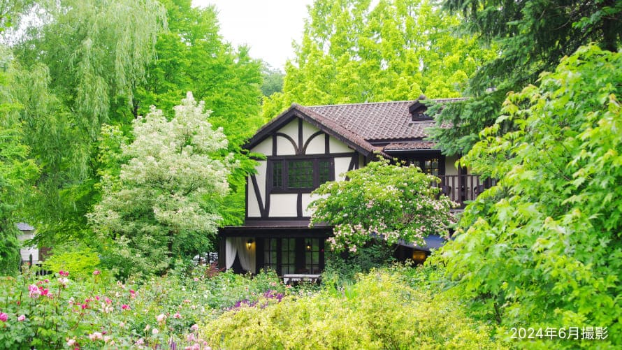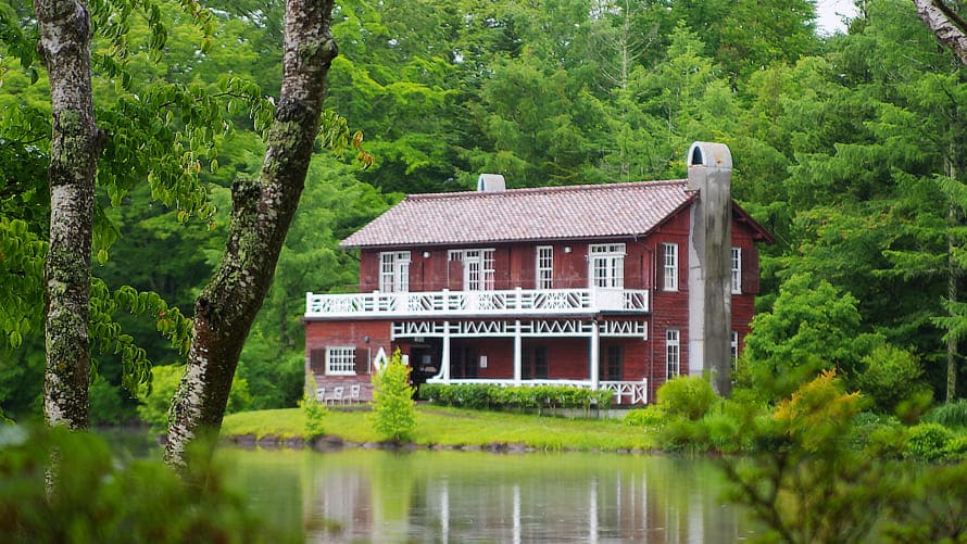 湖畔には『旧朝吹山荘 睡鳩荘(すいきゅうそう)(※2)』がたたずみ、撮影のベストスポットになっています。(※2:第1回「軽井沢緑の景観」特別賞受賞、国の登録有形文化財)