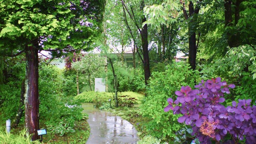 はじめて軽井沢を訪れるならば、軽井沢の自然を独自の手法で取り入れた美術館がおすすめです。『軽井沢千住博美術館』は、軽井沢の土地の傾斜をそのまま美術館の床の傾斜に用い、色とりどりの植物と絵画が一体となって鑑賞できるよう設計された美術館です。海外からもたくさんの方々が訪れています。