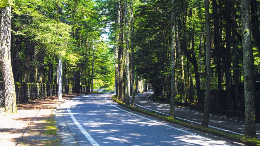 『軽井沢ショー記念礼拝堂』から『旧軽井沢銀座通り』に戻り、旧軽井沢ロータリーから右手に進んでいくと『c』があります。新日本街路樹百景に選ばれた、約2kmの美しい並木道です。はじめて軽井沢に訪れた方におすすめの、軽井沢らしい雰囲気が味わえる人気のスポットです。 『三笠通り』は、背丈の高いカラマツの樹木が並び、軽井沢らしい雰囲気を醸し出しています。道の両側だけではなく、センターラインにも樹木が連なり壮観な風景です。高い木々が陽ざしをさえぎり、避暑地らしいひんやりとした空気が流れています。