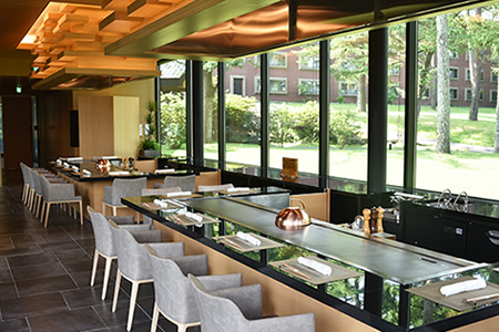 すき焼・しゃぶしゃぶなど、信州産にこだわった食材を中心とした和食メニューのほか、鉄板焼コーナーを新設いたしました。軽井沢の自然を眺めながら、シェフが目の前で腕をふるうメニューをお召しあがりいただけます。