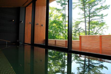 天然温泉を使用した内湯、露天風呂、スチームサウナを満喫していただける「温泉ゾーン」からは、四季折々に趣を変える美しい森をご覧いただけます。