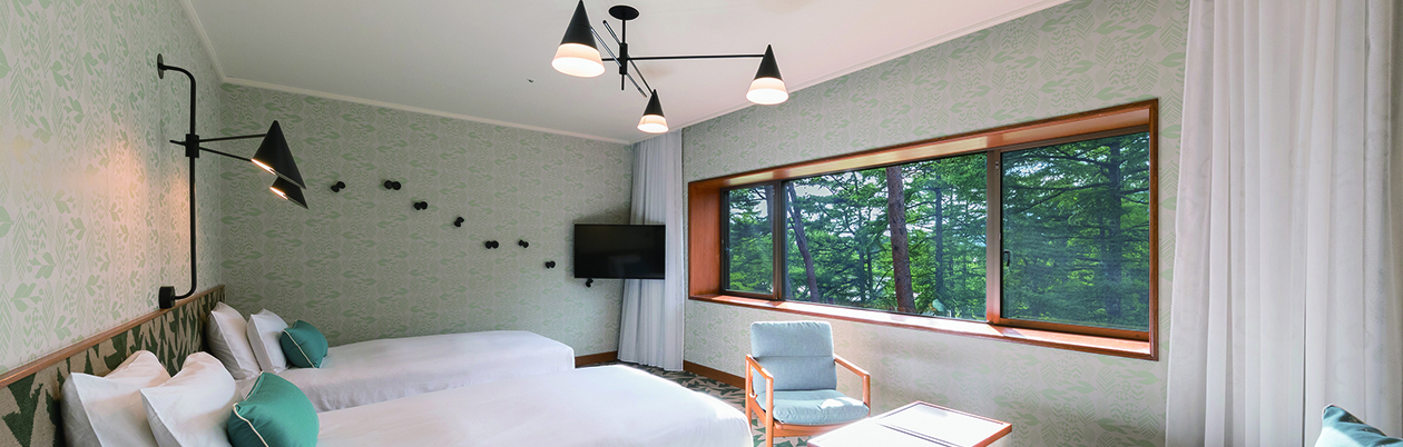 軽井沢の森に泊まるようなかわいらしいお部屋は、女子旅でのご利用に最適。