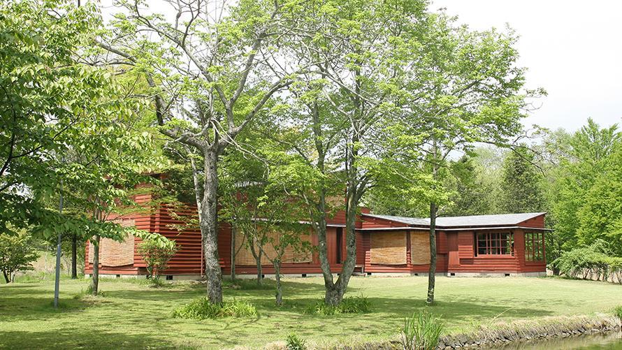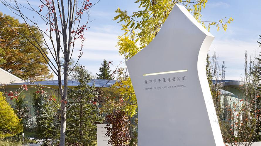 日本の現代アート作家と海外の作家の作品を展示。総ガラス張りをベースにカラマツ林をイメージした白い柱が印象的。敷地内に佇むハートのアート、ジャン=ミシェル・オトニエルの「こころの門」も見所です。