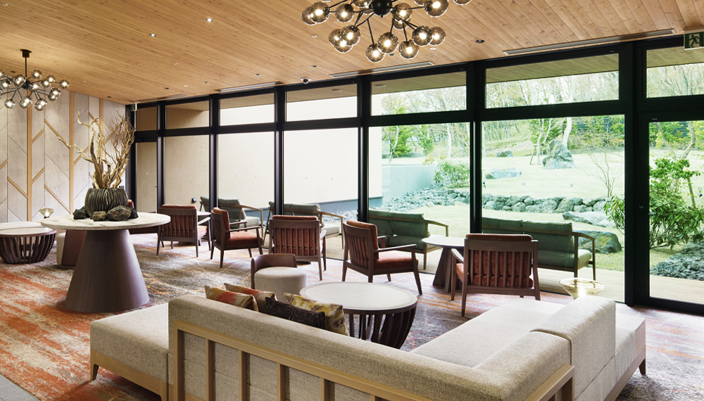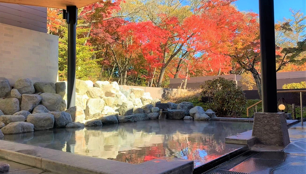 「MOMIJI HOT-SPRING」は、大きなガラス窓が解放的な内風呂に、広々とした露天風呂、流行りのロウリュ サウナや、ラウンジ、フィットネスルームまで充実の施設がそろった温泉棟。特に秋は温泉の名前の通り、真っ赤に色づくモミジなどの紅葉に囲まれ、身も心もリフレッシュする癒しの時間が流れます。