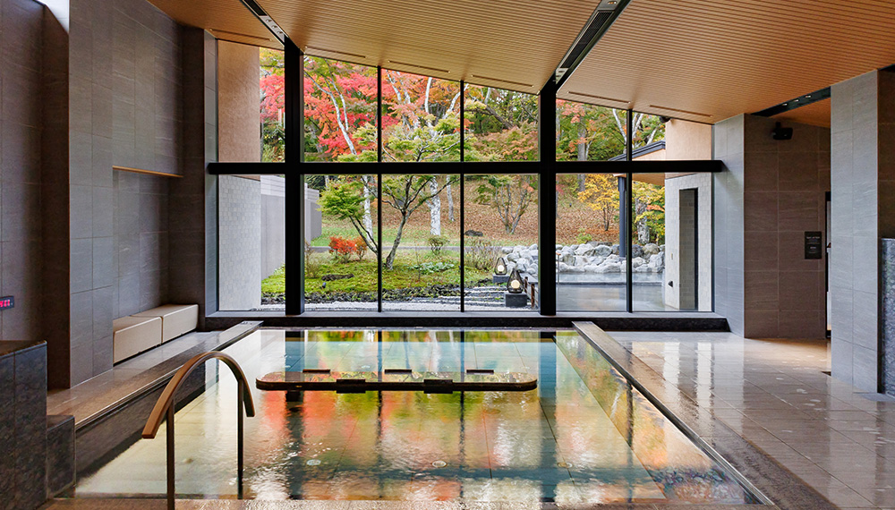 ゆっくりとやさしく流れるひととき、四季を通して美しく彩られる⾵景、そっとつつみこんでくれる美肌効果のある上質のお湯。