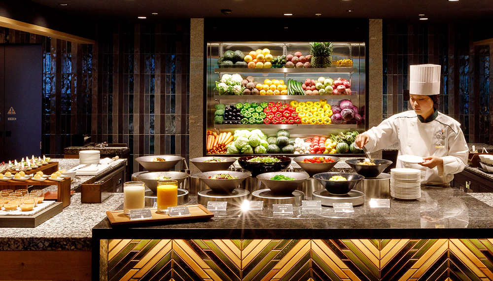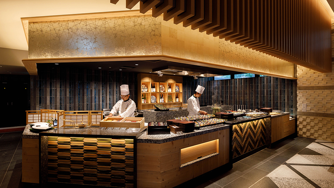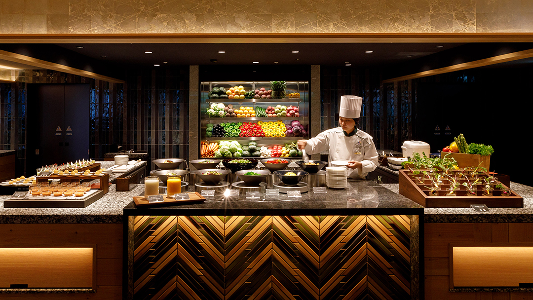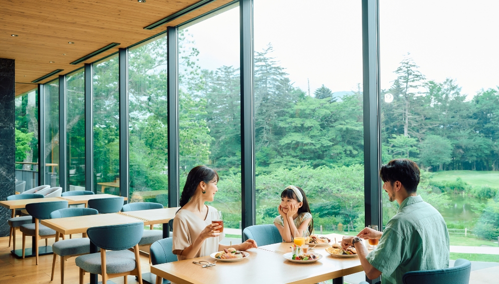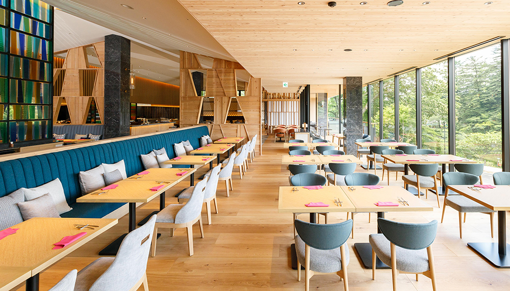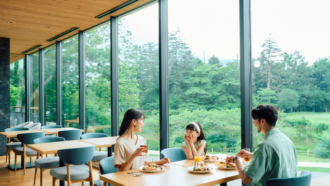“軽井沢の四季を知らせる風と光”をテーマにした開放的な店内で、信州・軽井沢の素材を存分に味わえるブッフェスタイルのオールデイダイニング「ALL DAY DINING LOUNGE/BAR Primrose」。春や秋はテラスで気持ちいい風を感じながら楽しむのもおすすめ。パティシエが創り出すスイーツも見逃せません。