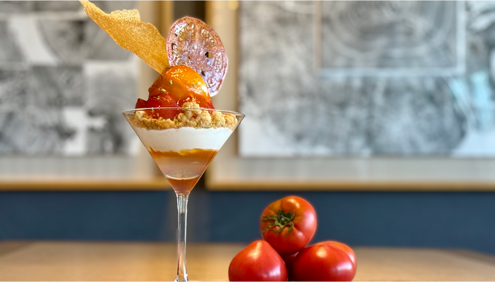 「野菜がデザートに変わる魔法」をテーマに、ホテルパティシエが考案した暑い夏を乗り切るためのひんやりパフェをご用意しました。軽井沢産アメーラトマトの甘みとさっぱりとした酸味が、軽井沢の涼しい気候と相性抜群です。涼やかな夏のひとときにぴったりなこのパフェを、軽井沢の爽やかな環境の中でお楽しみください。