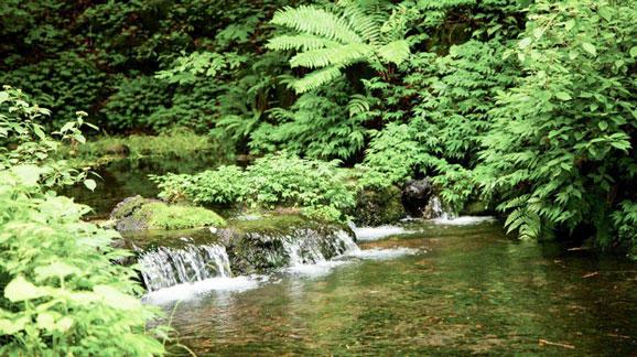 「雲場池」から静かな道を1.5キロ程度走ったところにあるのが雲場池の水源である「御膳水(ごぜんすい)」です。湧出量、水質ともに優れたこの湧き水は、古くから大名や宮家などの御膳に用いられてきたことでこの名前で呼ばれるようになったそうです。