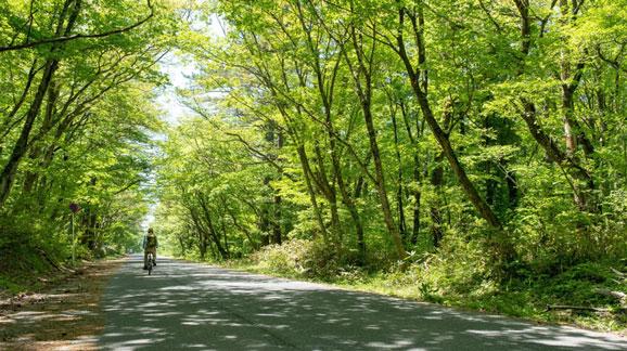 途中には木々が茂り、緑のトンネルのような場所や、佐久平を見渡す絶景ポイントもあります。一方、全区間を走るのはサイクリングに慣れた人でないと難しいため、一部を走ってみる、お立ち寄りスポットを目的に1,000m林道を訪れる、といった形で楽しんでみてはいかがでしょうか。