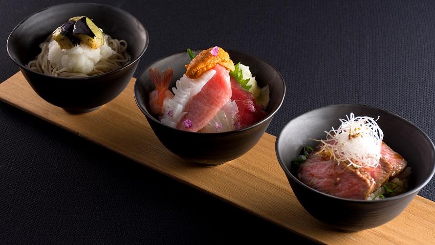 Cold Soba with Grated Radish/Assorted Raw Seafood Bowl/Grilled Beef Bowl