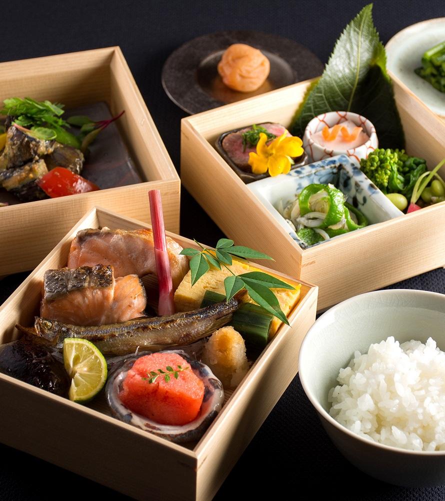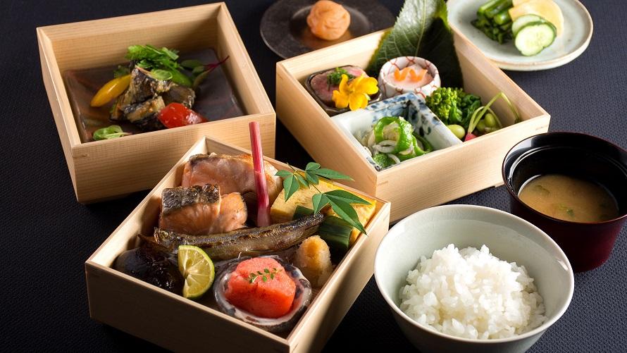 長野県産の「五郎兵衛米」を店内の羽釜で炊き上げた炊き立てのご飯と、信州味噌のお味噌汁。野菜や魚を中心とした季節のお惣菜を木箱に詰めた和朝食をお楽しみいただけます。