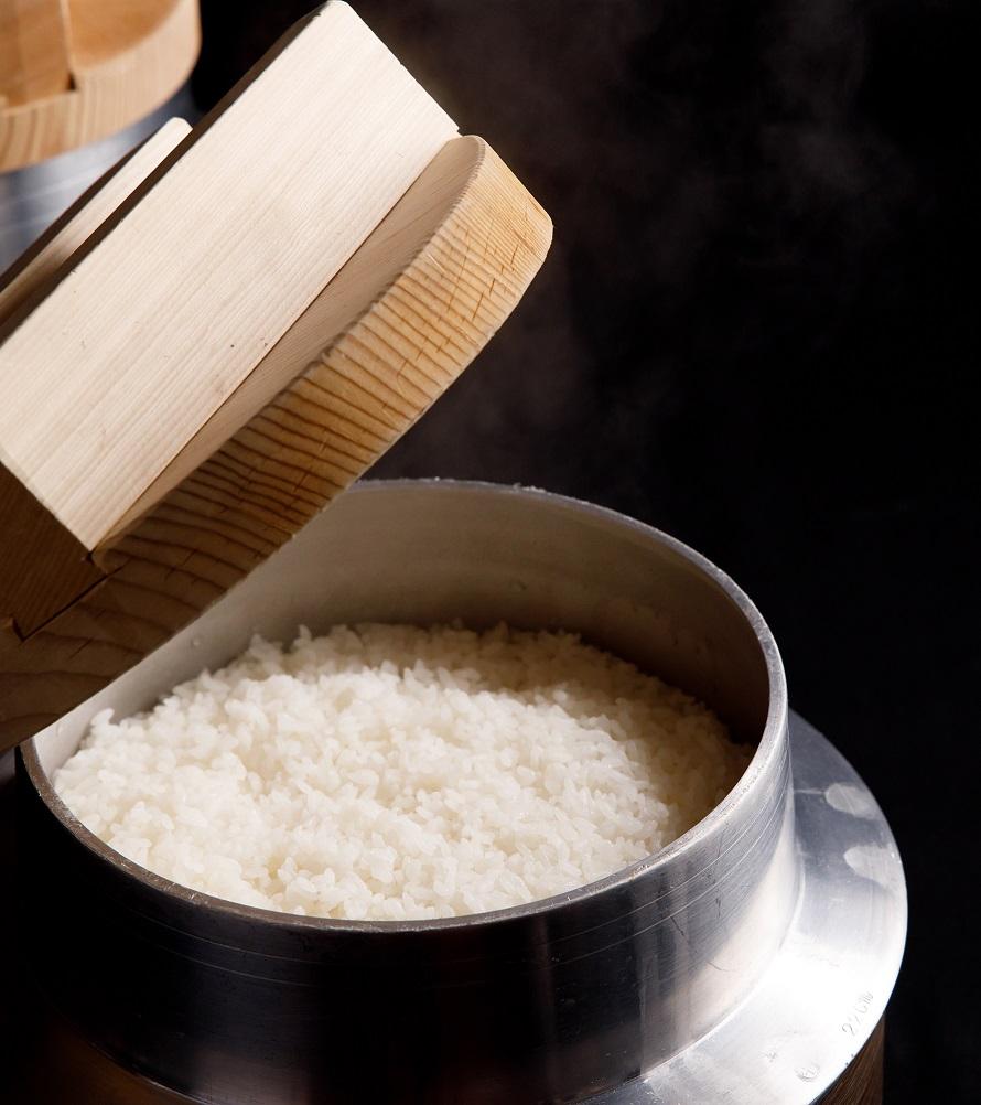 この旨みを最大限に引き出すため、昔ながらの羽釜で丁寧に炊き上げています。