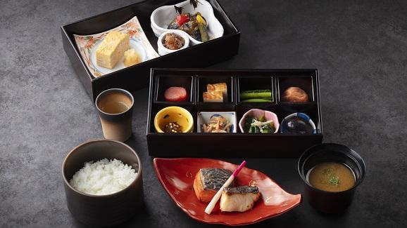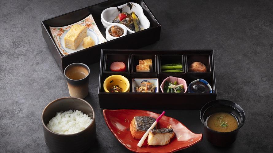 Nametake mushroom/Walnut and sand eel/Today's small appetizer (2 types)/Spicy seasoned Cod roe/Fish cake/Pickled vegetables/Pickled plum/Today's cooked vegetables/Soy-Simmered beef/Japanese melet/Salt-grilled salmon/Grilled miso-marinated sablefish/Steamed rice or Rice porridge/Miso soup