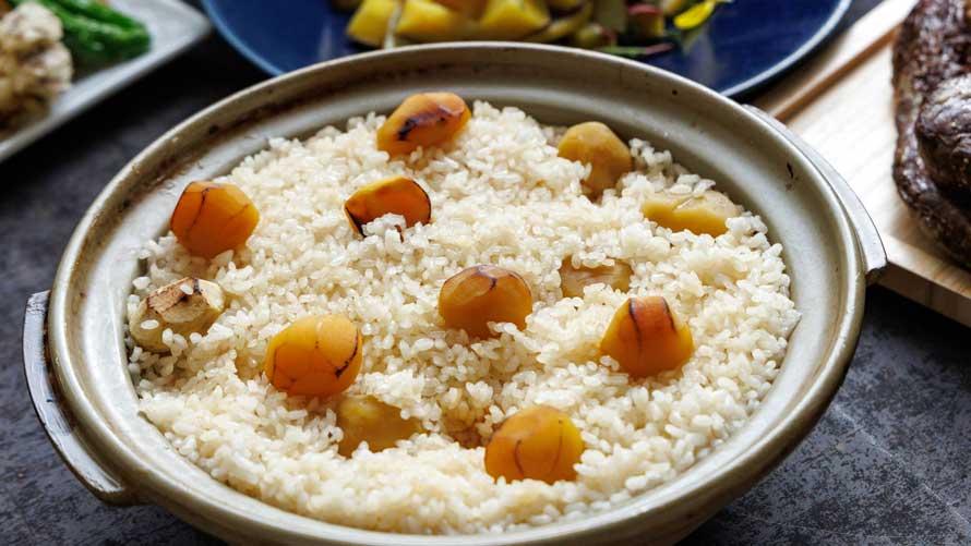 しっとり焼き上げたローストビーフと3種のソース、上海蟹のあんかけ、鰹のたたき、生ハムとイチジクとゴルゴンゾーラのピザ、焼き栗ごはんと、趣向を凝らした和・洋・中の秋の味覚が集結しました。旬のくだものを使ったスイーツもたっぷりご用意しています。